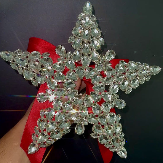 Transform your holiday decor with this Crystal Star Christmas Tree Topper, a breathtaking piece handcrafted with rhinestones and crystals for a radiant, timeless look. Designed for those who love luxury and sparkle, this topper brings a dazzling finishing touch to your Christmas tree.